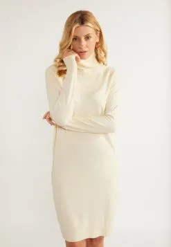 Gebreide Jurken Gebreide Jurk Dames Crème